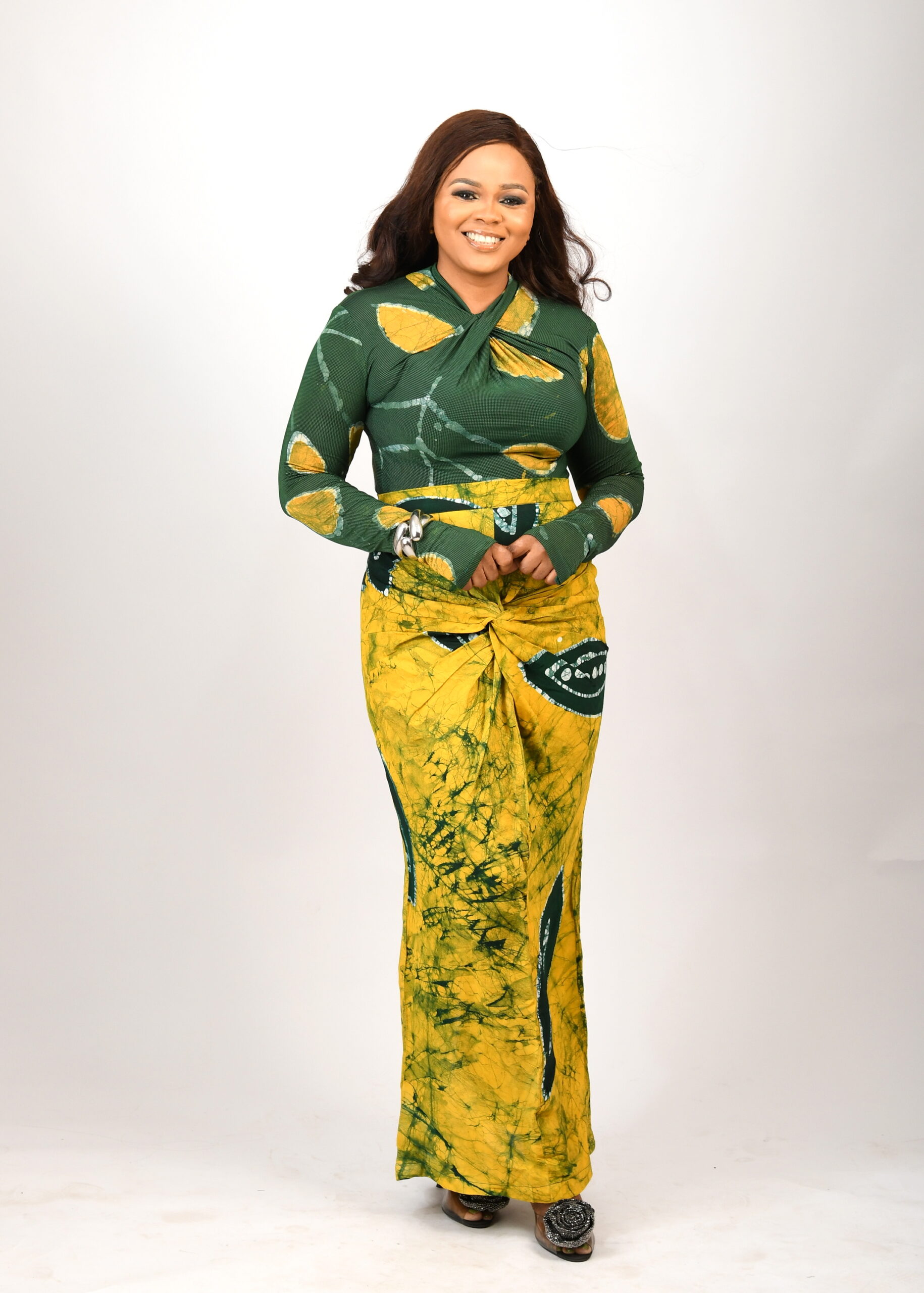 Our Adire mesh top paired with crepe pants or skirt is designed for the woman who loves comfort, style, and timeless African fashion.